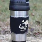 - Stainless steel 16 ounce travel coffee mug